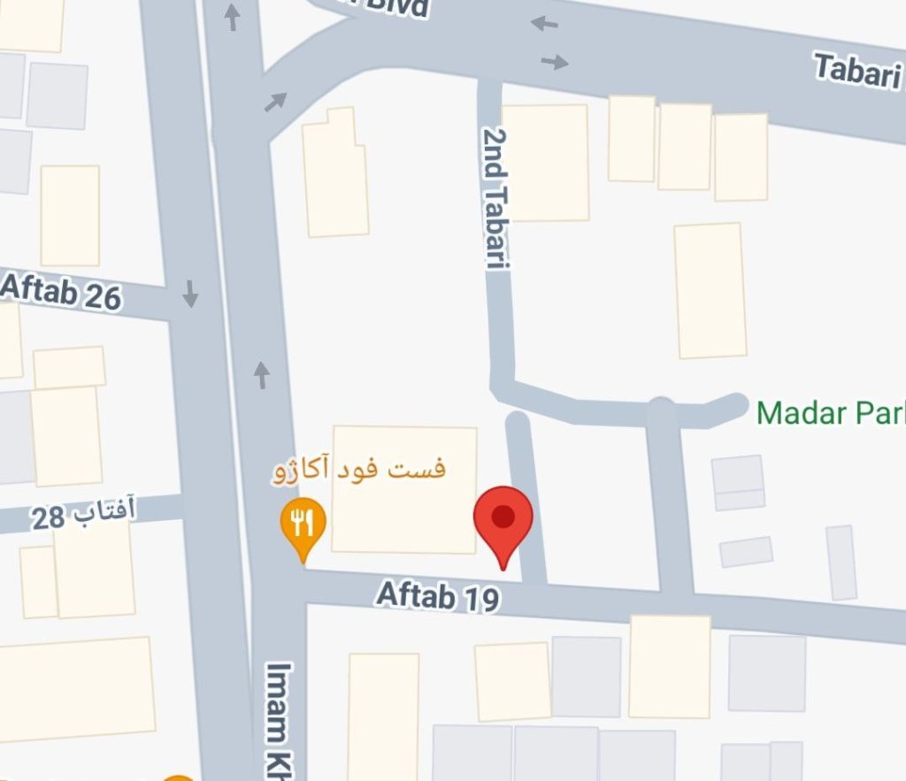 مازندران – آمل – خیابان امام خمینی (هراز) – آفتاب ۱۹ – ساختمان پیرزاد – طبقه دوم – واحد ۳